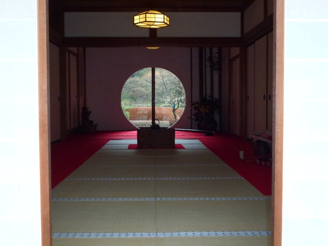 (左)早朝座禅会を終えてほっと一息。6:30集合ということで暗くて寒い中での座禅でしたが、一時間は思いのほか短かい。心を無にしてひたすら座り続けると、不思議と心にゆとりが生まれる。座禅の後のお汁粉が身も心も温めてくれた。