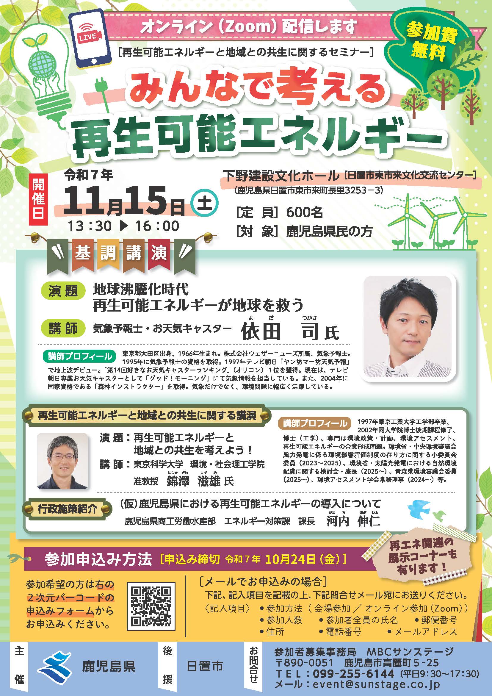 11月15日(土)「みんなで考える再生可能エネルギー」鹿児島県主催